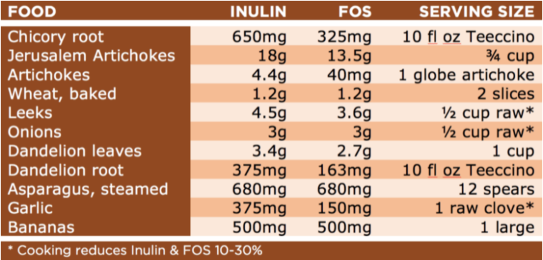 If you drink Teeccino and read our package copy, you’ve seen that Teeccino contains inulin that naturally extracts during brewing from chicory root. Inulin is a prebiotic soluble fiber that feeds beneficial intestinal microbiota. It’s found in many foods but in small quantities.