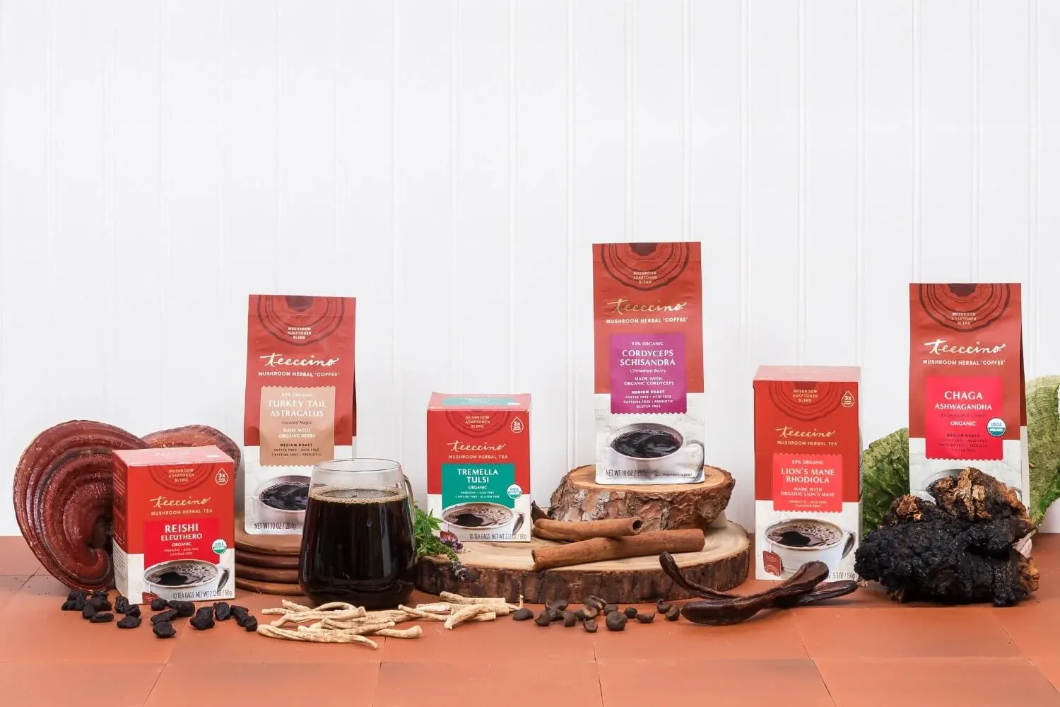 Teeccino Mushroom Adaptogen blends contain fruiting bodies and mycelium