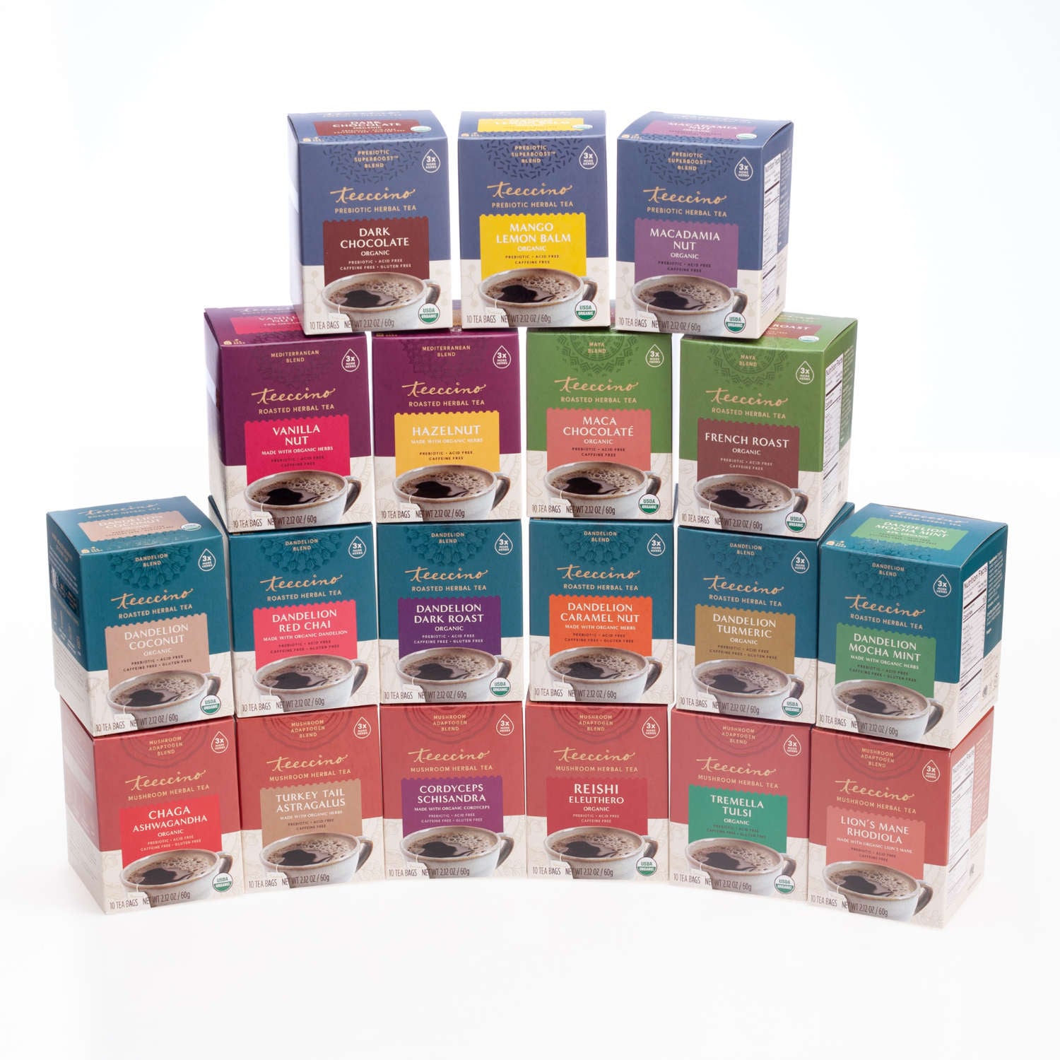 Nothing like celebrating your 25th anniversary by creating 9 new flavors for Teeccino! I’ve been inspired by the growing interest in adaptogenic herbs and mushrooms which I’ve been consuming myself for decades. Teeccino has always been ahead of its time, and now the time is compelling us to expand our wellness offerings.