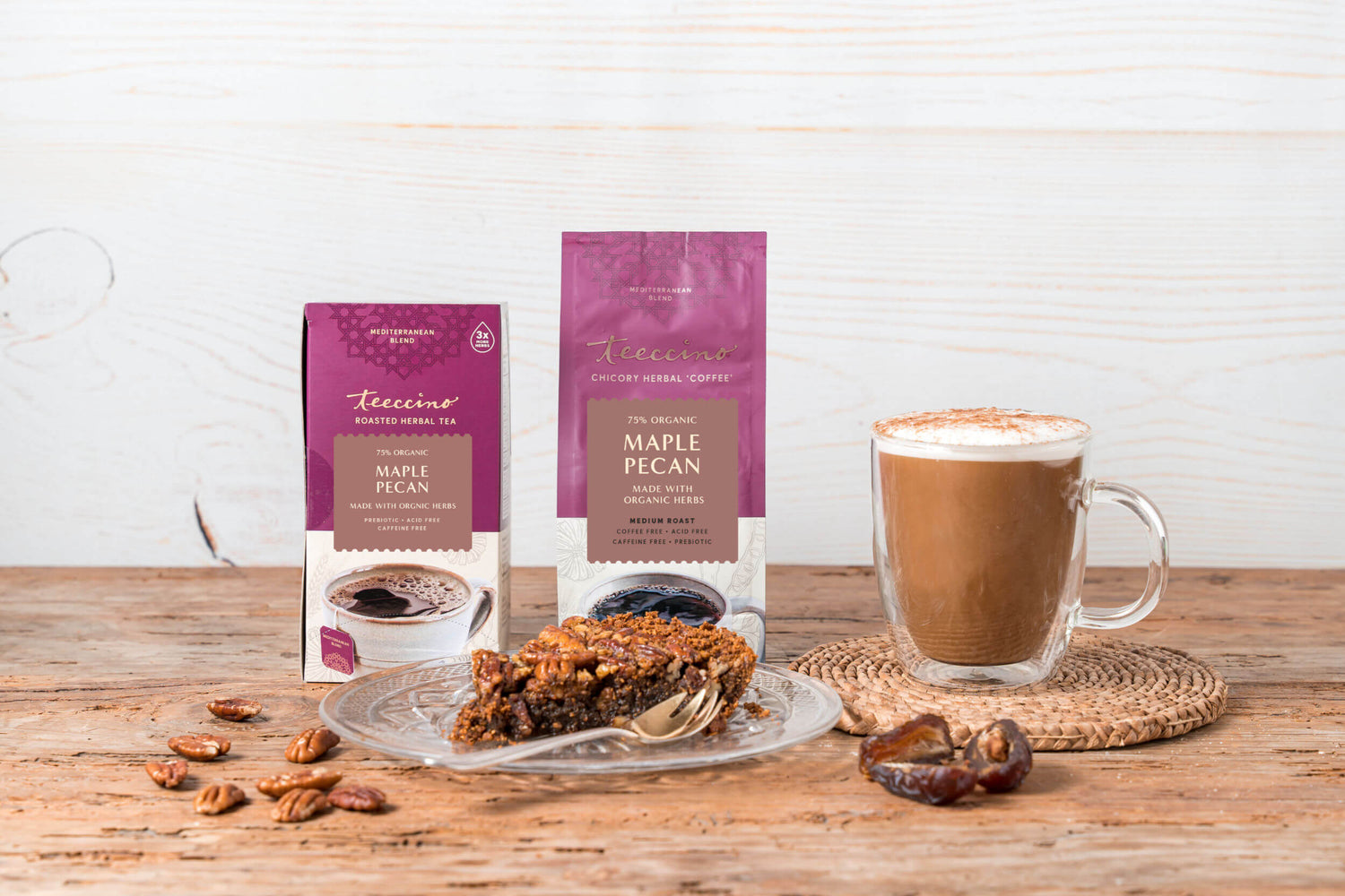 Pecan pie is a traditional holiday recipe but yours will be so exceptional that your guests will be begging to know your secret recipe. The roasted notes of Teeccino Maple Pecan and the deep golden, caramelized flavors of maple are a match made in Heaven. When topped with vanilla bean ice cream and served with a warm, aromatic mug of Teeccino, there won’t be any leftovers.