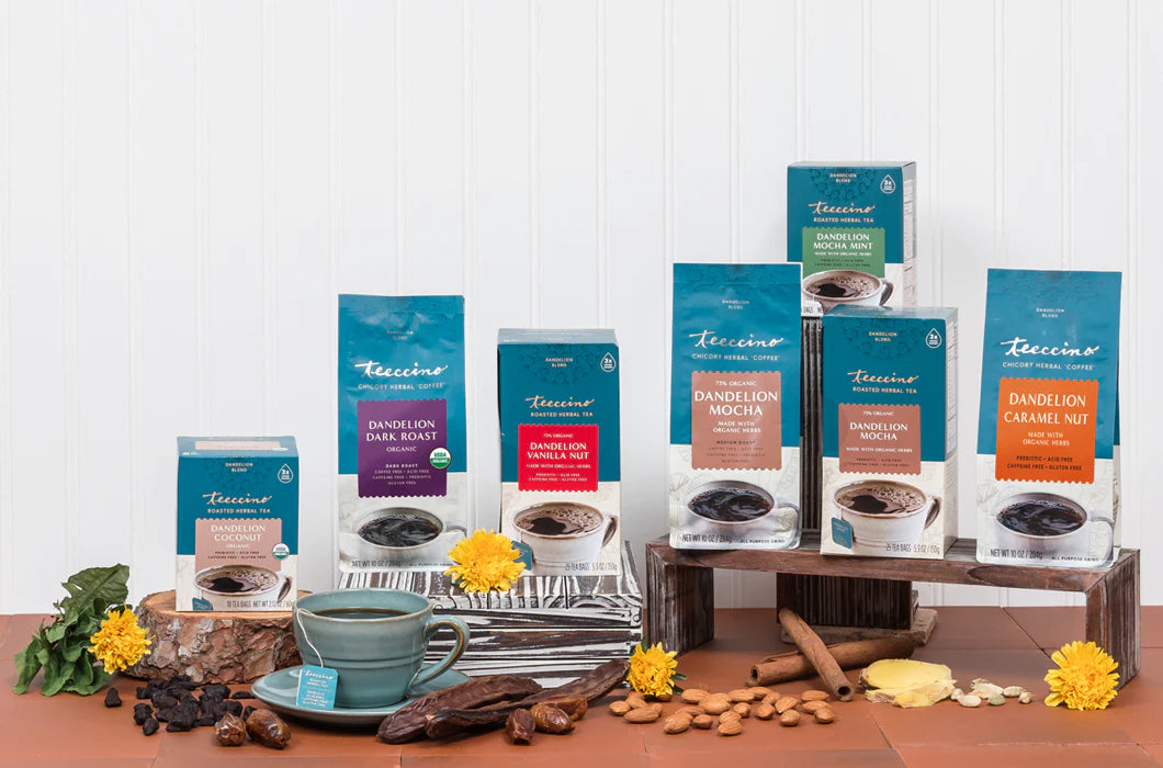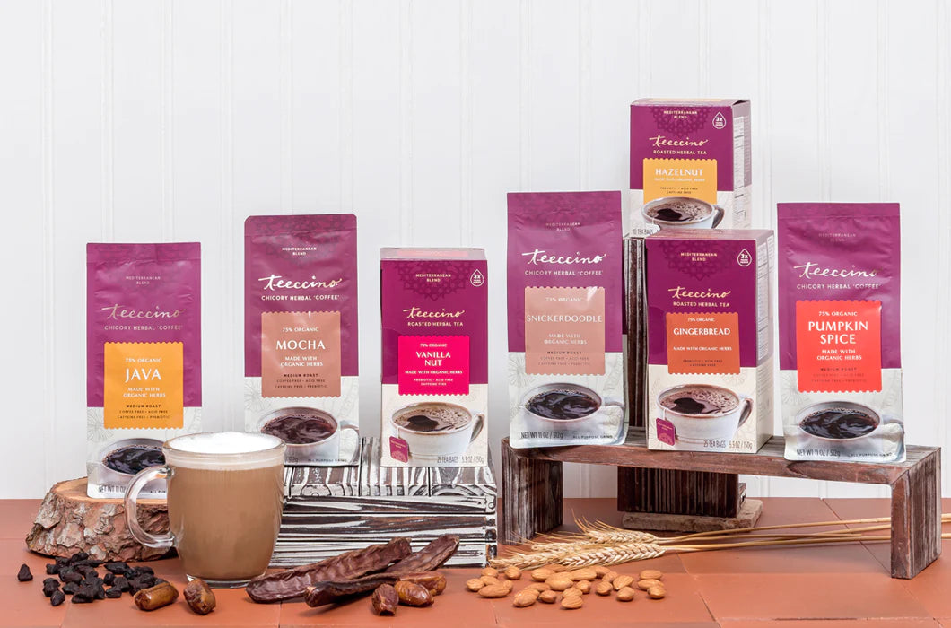 Every cup of Teeccino is brimming with nutritious health benefits that are naturally released during brewing from Teeccino’s herbs, roots, fruits and nuts. These nutrients are quickly absorbable from brewed Teeccino because the nutrients are suspended in liquid so digestion isn’t needed to remove them from fiber.
