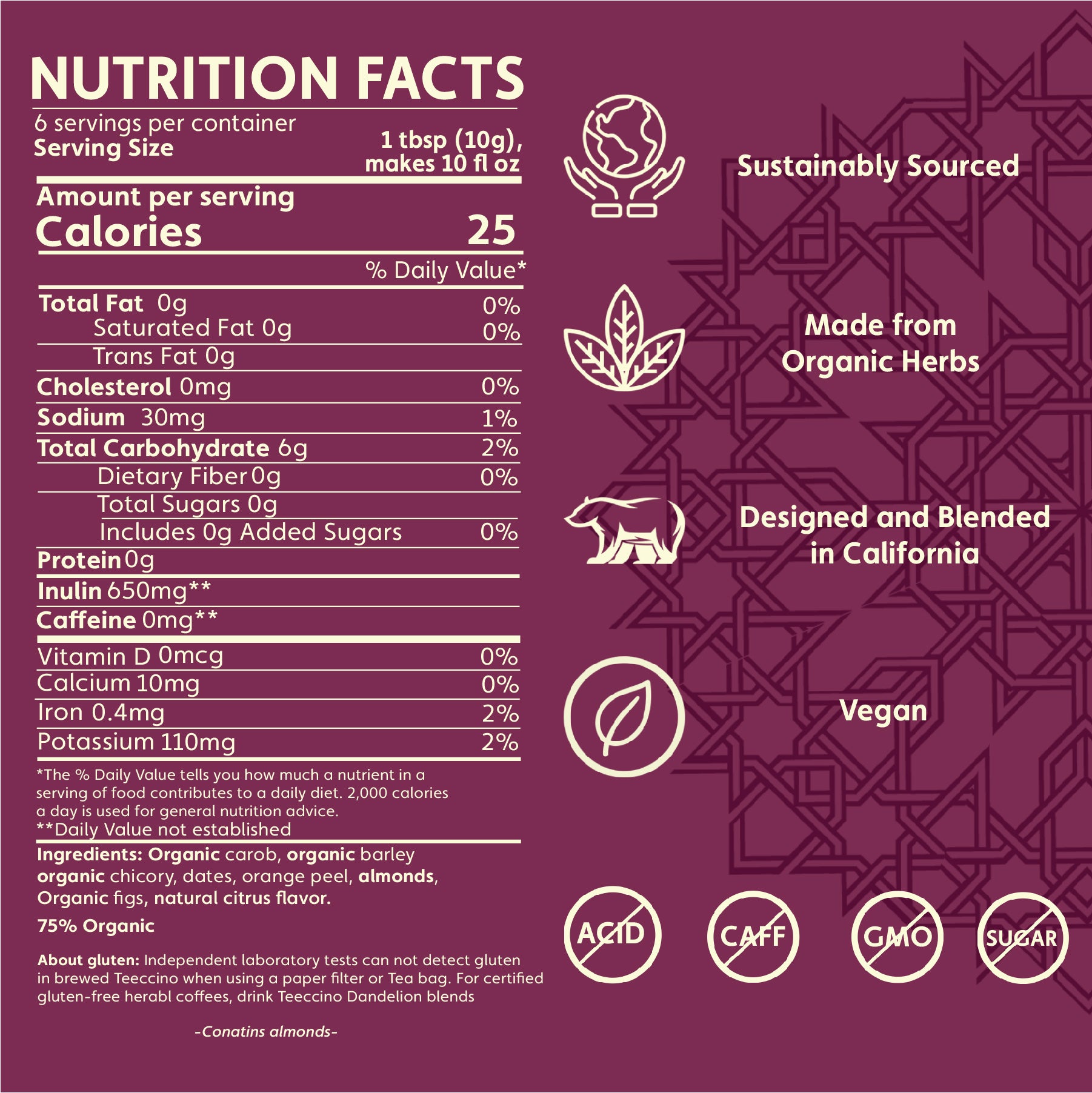 Pure instant Teeccino with no added creamer. Just stir into hot water for fast, bold flavor.