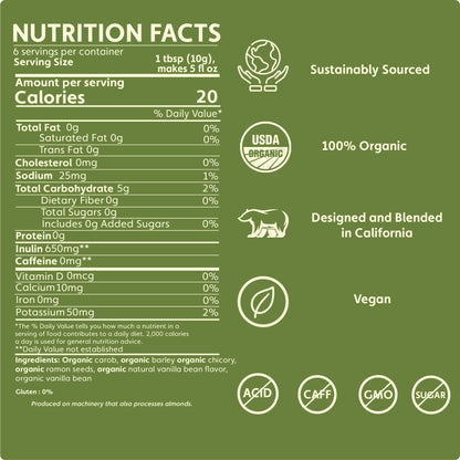 Pure instant Teeccino with no added creamer. Just stir into hot water for fast, bold flavor.