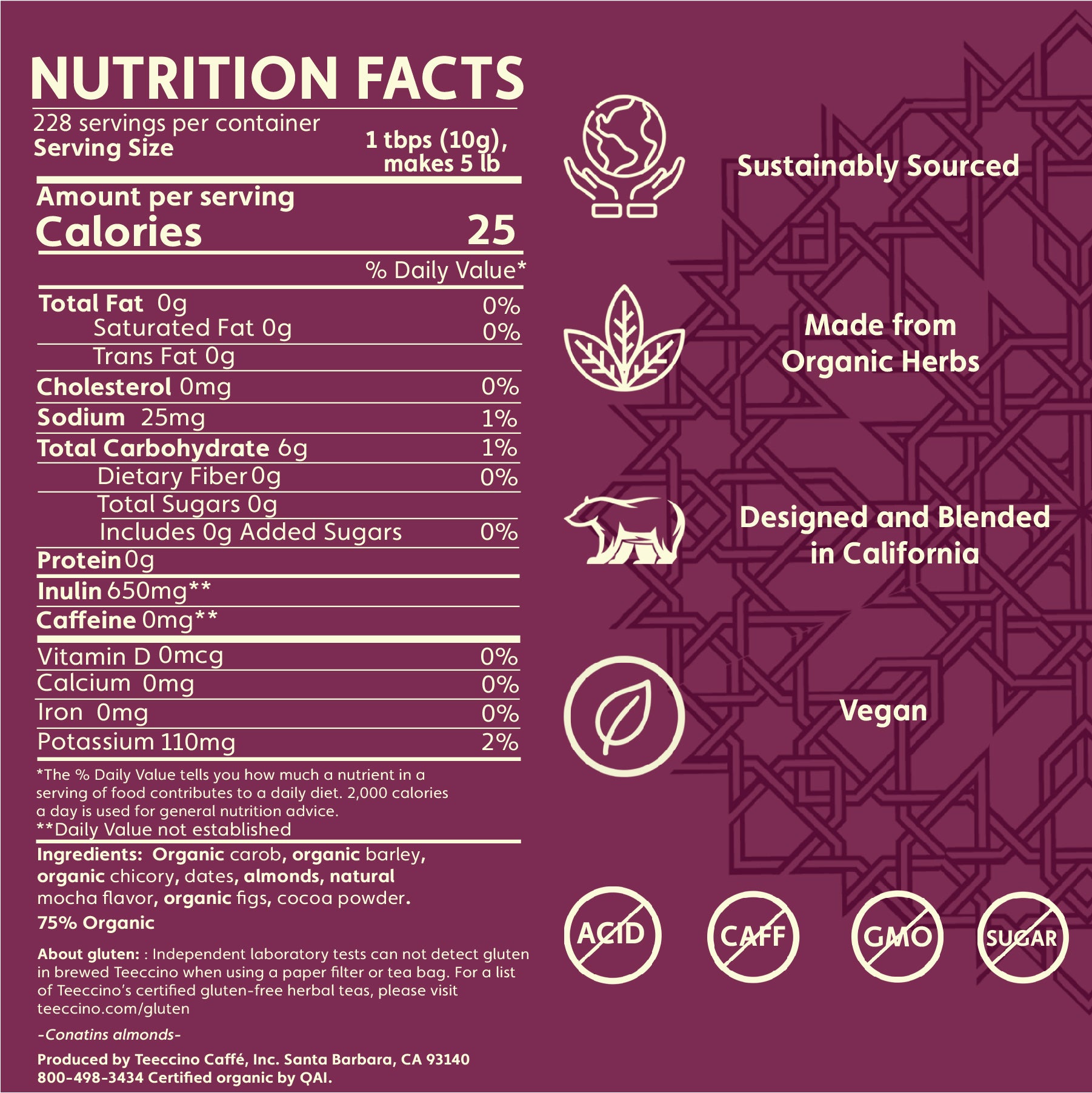 Pure instant Teeccino with no added creamer. Just stir into hot water for fast, bold flavor.