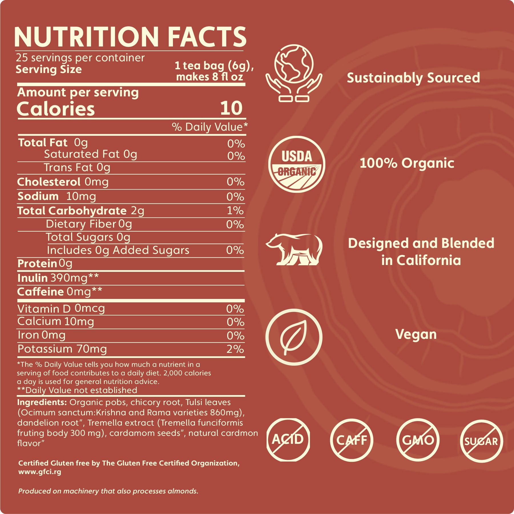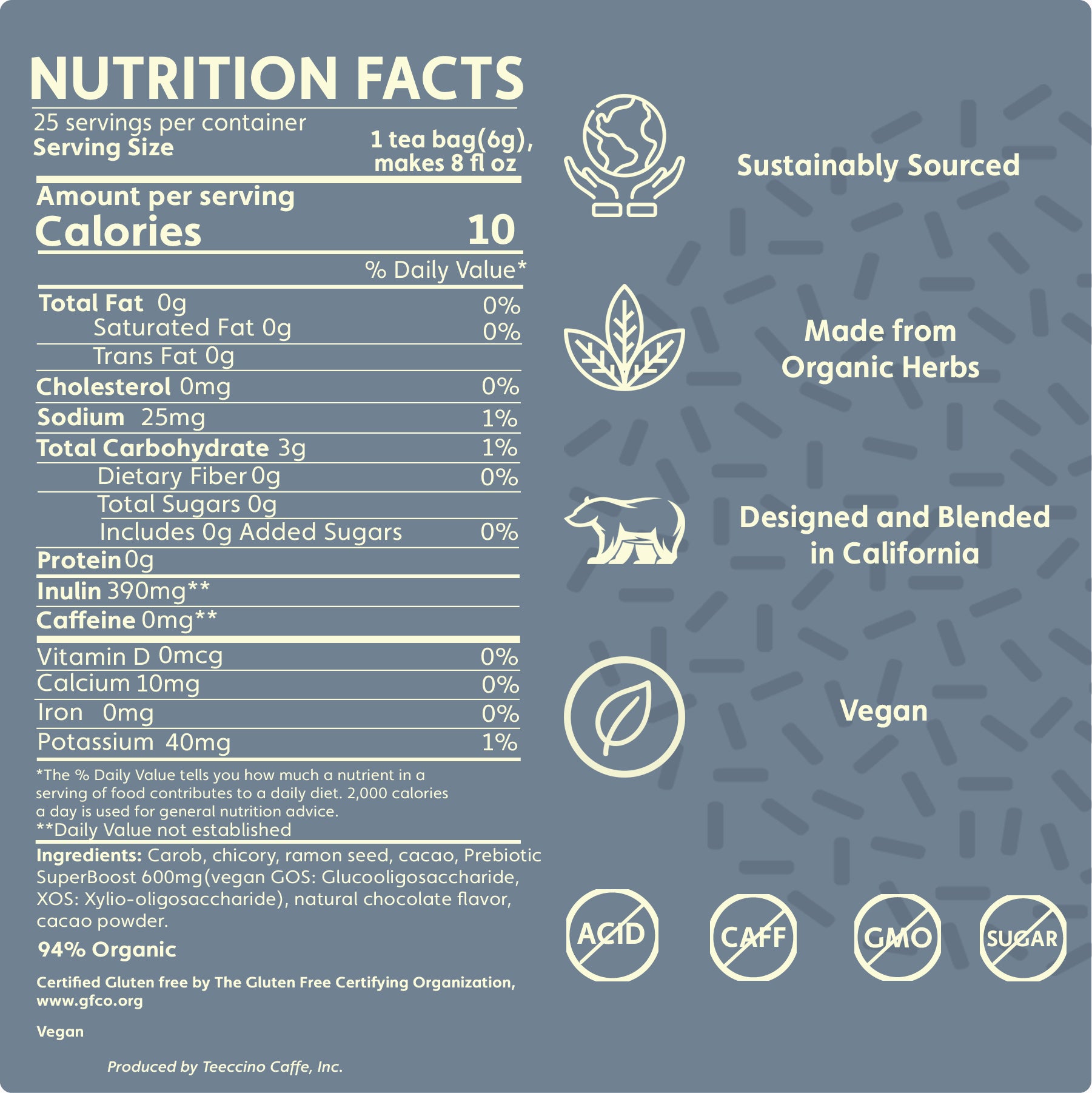 Rich in inulin from chicory root, Teeccino nourishes beneficial gut bacteria, promoting a healthy digestive microbiome and comfort.